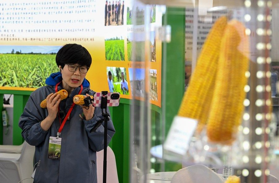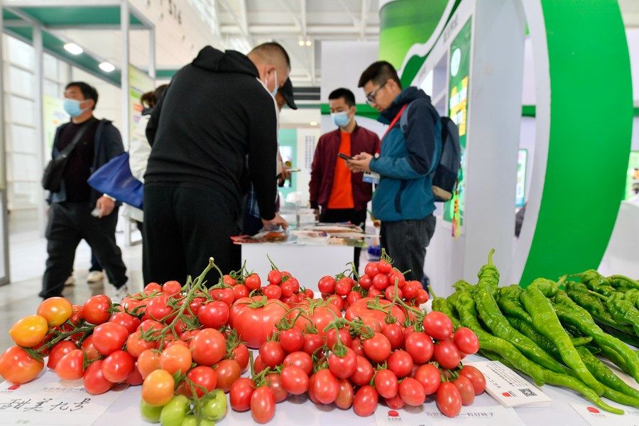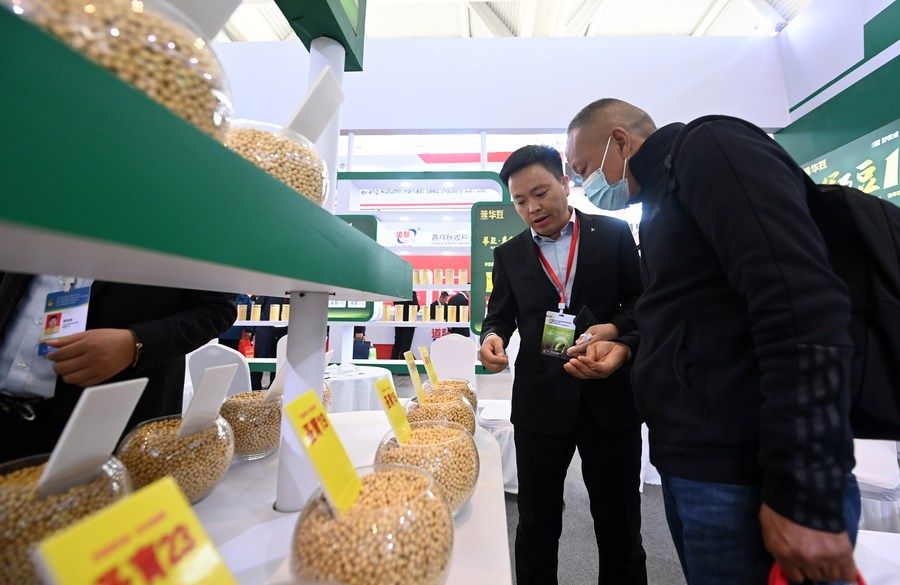 3月18日,參觀者和展商在展會上交流。當(dāng)日,第十四屆中國國際種業(yè)博覽會暨第十九屆全國種子信息交流與產(chǎn)品交易會在天津市開幕。新華社記者 趙子碩 攝