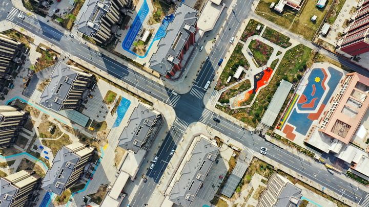 雄安新區(qū)容西片區(qū)內(nèi)的街道和公園(2023年3月31日攝,無(wú)人機(jī)照片)。新華社記者 牟宇 攝