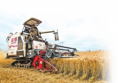 5月30日,鄧州市穰東鎮(zhèn)劉順雨村,農(nóng)機手操作履帶式聯(lián)合收割機搶收小麥。 本報記者 王錚 攝