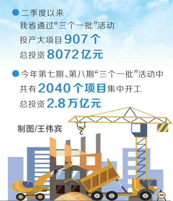 省發(fā)展改革委相關(guān)負(fù)責(zé)人介紹,二季度以來,我省通過“三個(gè)一批”活動(dòng)投產(chǎn)大項(xiàng)目907個(gè),總投資8072億元,為經(jīng)濟(jì)高質(zhì)量發(fā)展提供強(qiáng)力支撐。