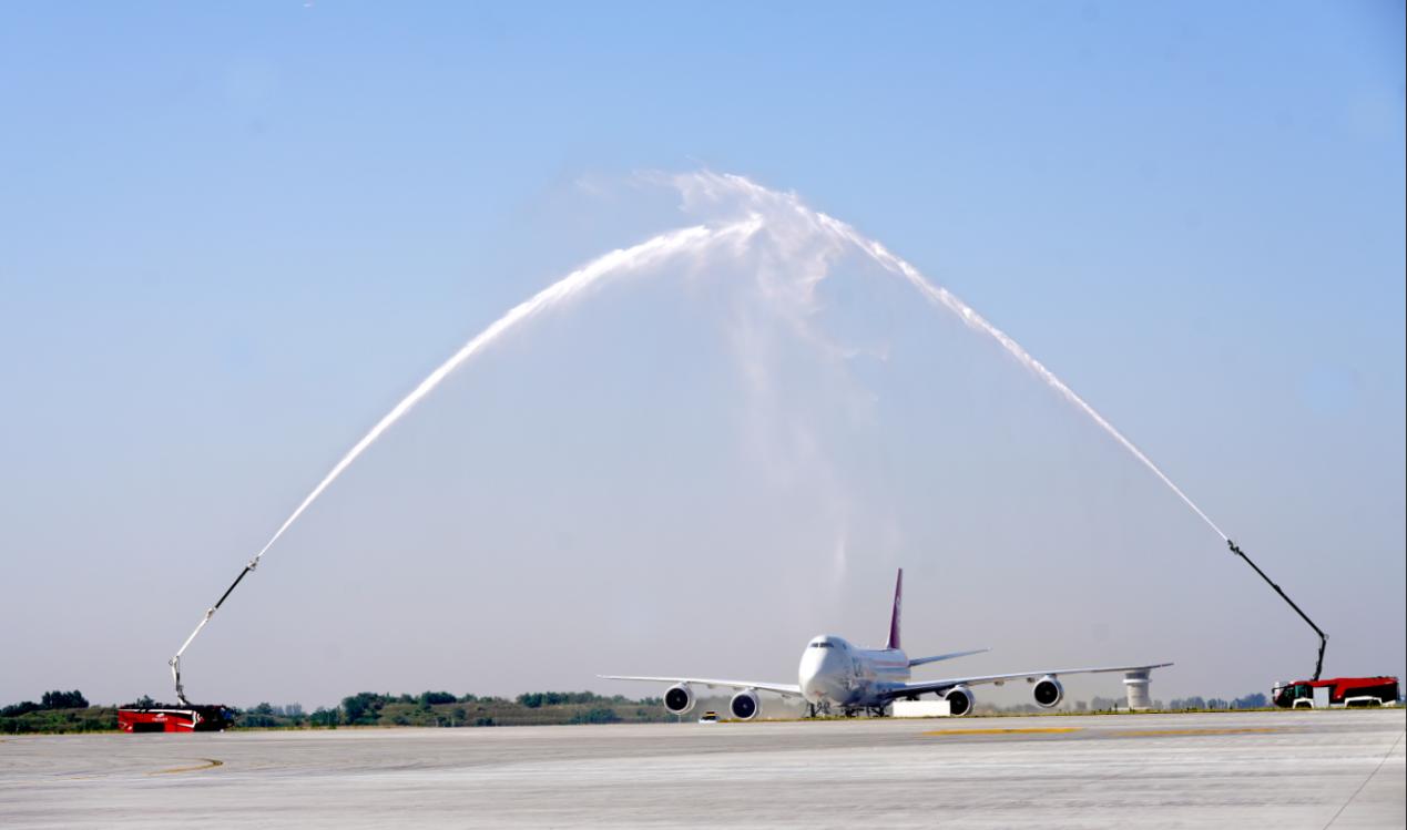 盧森堡貨航“鄭盧空中絲綢之路號”接受民航界最高禮儀“水門”的歡迎。姚自力攝