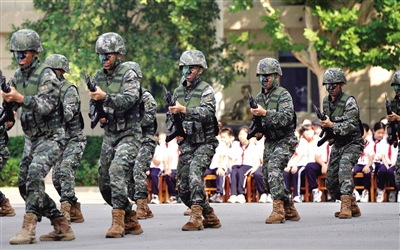 ??在軍事科目演示環(huán)節(jié),戰(zhàn)士們動(dòng)作流暢、剛勁有力?!疤鸷沉?!希望我9歲的兒子長大后能夠成為一名軍人,保家衛(wèi)國,做真正的男子漢。”市民吳先生說。