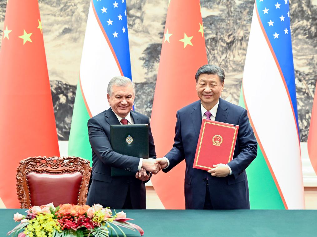 ??1月24日下午,國家主席習近平在北京人民大會堂同烏茲別克斯坦總統(tǒng)米爾濟約耶夫舉行會談。會談后,兩國元首簽署并發(fā)表了《中華人民共和國和烏茲別克斯坦共和國關于新時代全天候全面戰(zhàn)略伙伴關系的聯(lián)合聲明》。