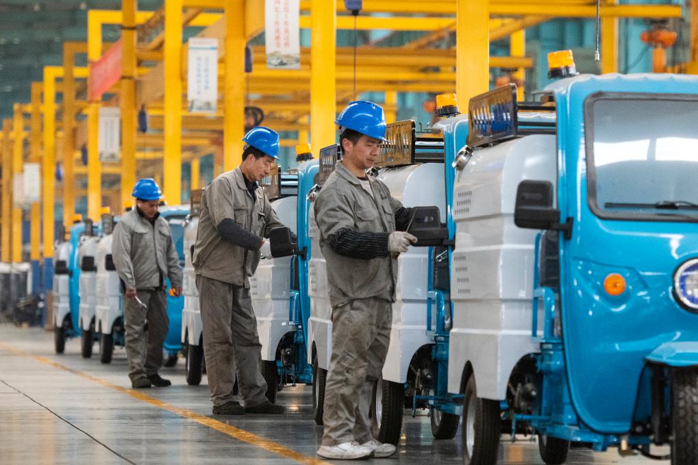 ?? 2月17日,在安徽省蕪湖市繁昌經(jīng)濟(jì)開(kāi)發(fā)區(qū)愛(ài)瑞特新能源專(zhuān)用汽車(chē)生產(chǎn)車(chē)間里,工人組裝新能源電動(dòng)清掃車(chē)。新華社發(fā)(肖本祥 攝)