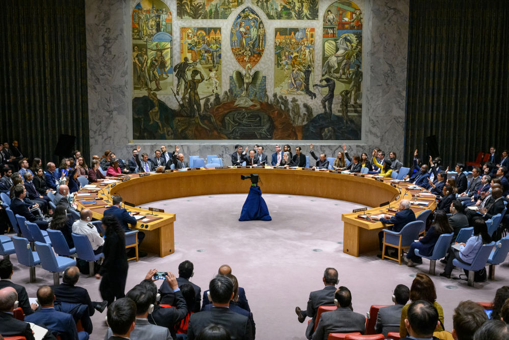 2023年11月15日,在位于紐約的聯(lián)合國總部,安理會(huì)就涉巴以局勢的決議草案進(jìn)行表決。新華社發(fā)(聯(lián)合國供圖/洛伊·費(fèi)利佩攝)