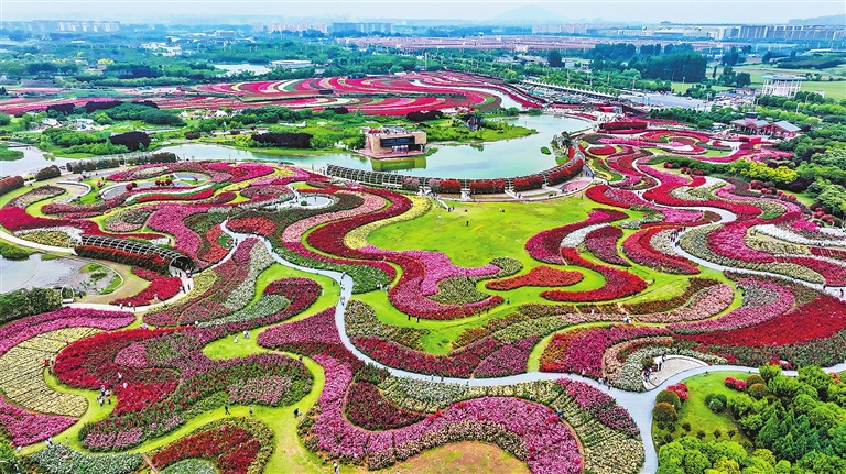 ??“五一”期間,南陽世界月季大觀園成為花海,6000多個品種的月季爭相怒放,吸引全國各地的游客前來觀賞(5月4日攝)。 崔培林 攝