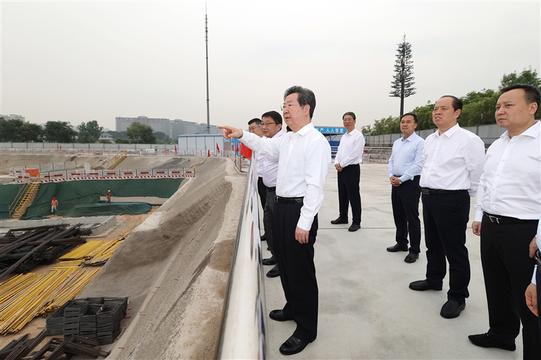 六月四日,省委書記樓陽生到國家超算互聯(lián)網(wǎng)核心節(jié)點(diǎn)工程項(xiàng)目施工現(xiàn)場,調(diào)研工程建設(shè)進(jìn)度、算力基礎(chǔ)軟件研發(fā)等情況。 本報(bào)記者 董亮 蔡迅翔 攝