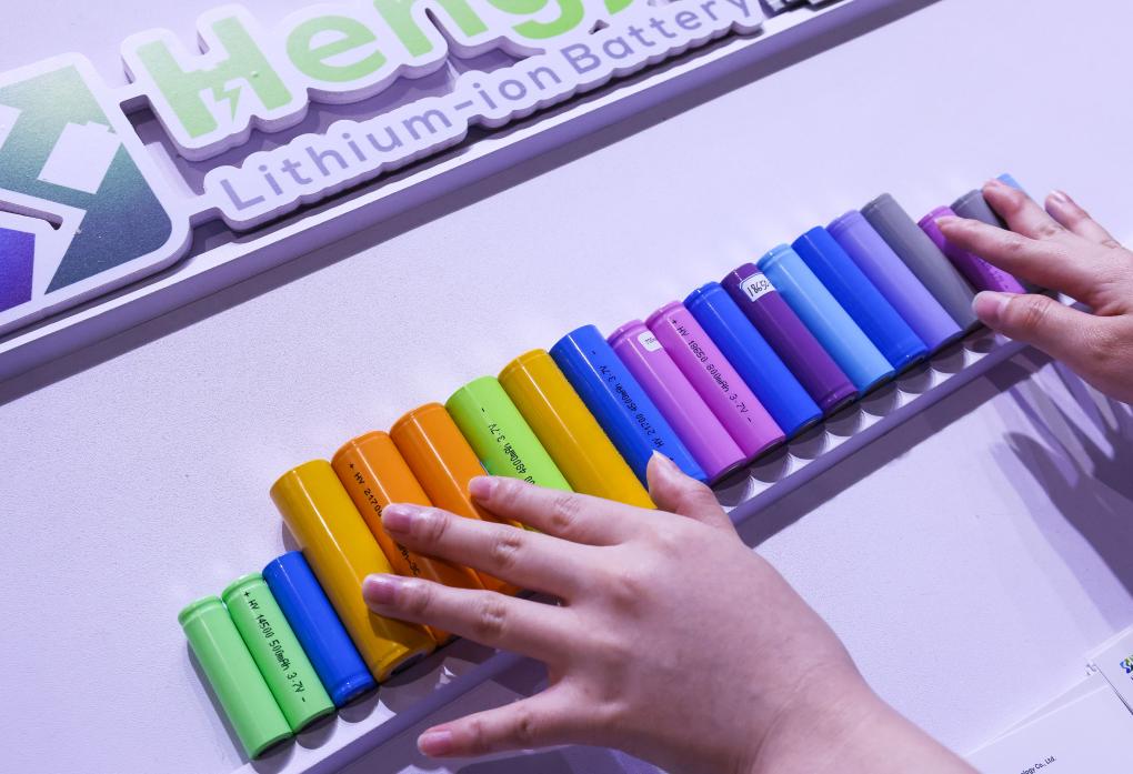 ??參展商在第135屆廣交會新能源展區(qū)布置鋰電池展品(2024年4月15日攝)。新華社記者 劉大偉 攝