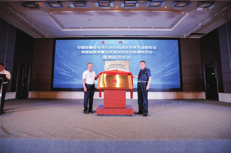 中國質(zhì)量檢驗協(xié)會碳中和綠色發(fā)展專業(yè)委員會河南省高質(zhì)量發(fā)展建設(shè)標準創(chuàng)新服務平臺揭牌。