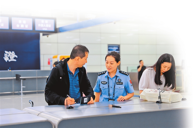 鄭州出入境邊防檢查站民警在引導(dǎo)旅客填寫外國人入境卡。 謝文長 攝