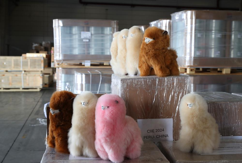 ??10月14日拍攝的運抵中遠海運自有倉庫的“溫暖駝”產(chǎn)品。當(dāng)日,中遠海運承運的第七屆進博會海運首單展品秘魯“溫暖駝”系列產(chǎn)品由洋山港碼頭運抵中遠海運自有倉庫,隨后改換短駁廂式車送往客戶公司。新華社記者方喆攝